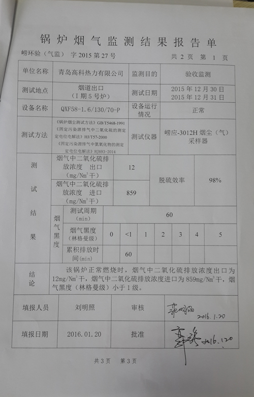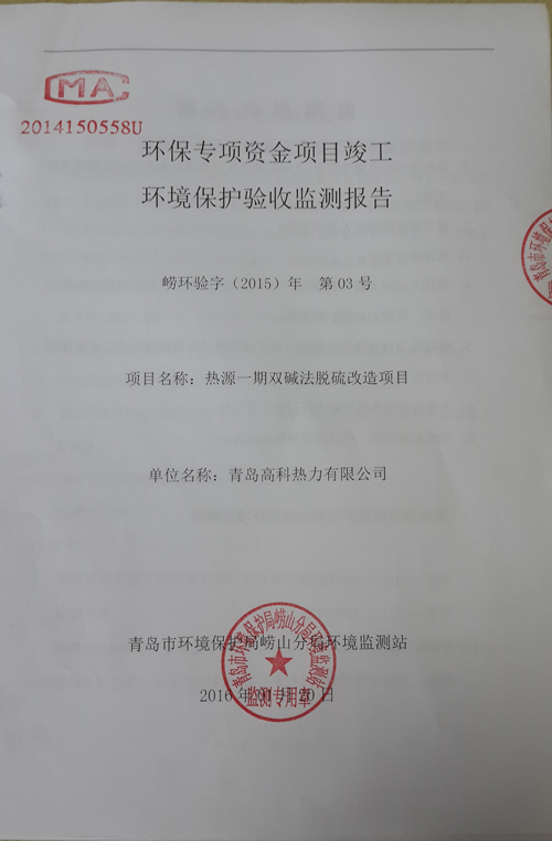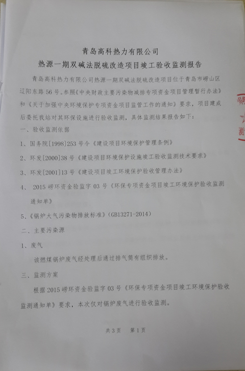 青岛高科热力有限公司热源二期1#脱硫塔超洁净排放改造 建设项目环境影响报批前公示